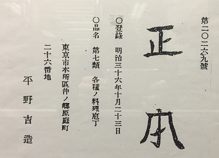 As the first generation Minosuke engraved the "正" ("Masa") character on his knives as proof that he had made them himself, the second generation knife craftsman Kichizo Hirano sought to register this character as the trading name when the trademark registration system began in 1884.