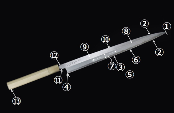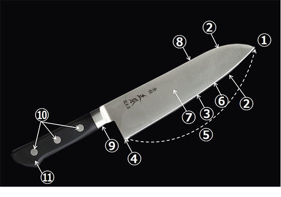 The parts of a knife are given names down to a fine level of detail. Learn the names you will need to know when sharpening the knife.