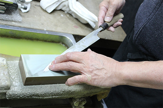 After carefully washing the newly sharpened knife in hot water and thoroughly wiping away the moisture with a dry cloth, it is recommended that you apply an oil coating, wrap the knife in plastic or similar material and store it in a place with minimal moisture.