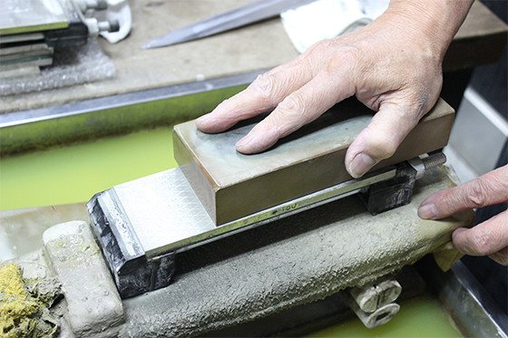Use a tool for plane correcting to make the surface of the whetstone flat again. If sharpening at home, rubbing the whetstone against the reverse side of another whetstone or on a flat concrete surface is the easiest way.
